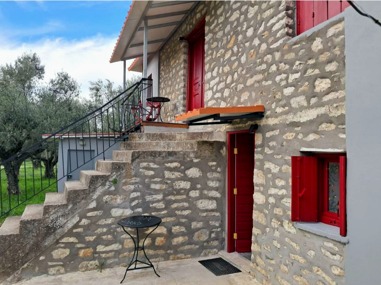 • 🪜 Εσωτερική μεταλλική σκάλα και εξωτερική παραδοσιακή πέτρινη σκάλα